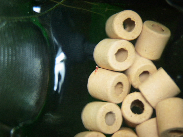卵だけだと網が浮いてくるので重しに濾材を入れてみました。
