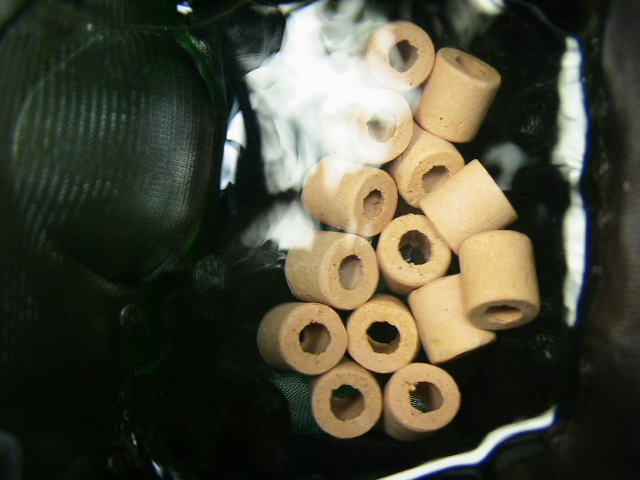 卵だけだと網が浮いてくるので重しに濾材を入れてみました。