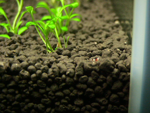 会社泊まりで一日家空けて帰ってきて水槽見ていたら、稚えび発見!!