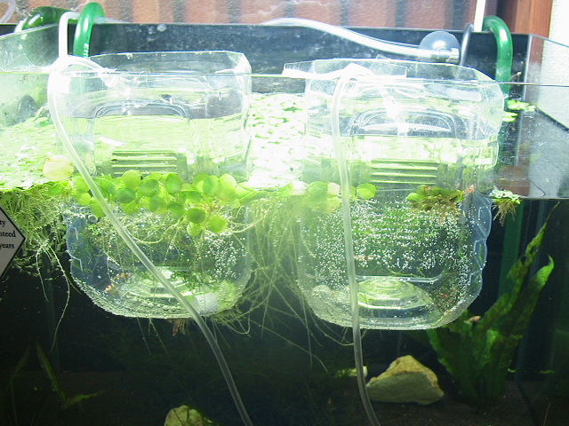 今年新たに立ち上げた通称ゲンさん水槽に2リットルのペットボトルを半分に切ったのを入れ温度合わせ、水合わせをしました。