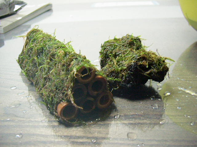もちろんこのまま水槽に入れる訳もなく、いつもの様にウィーローモスを巻きつけました。