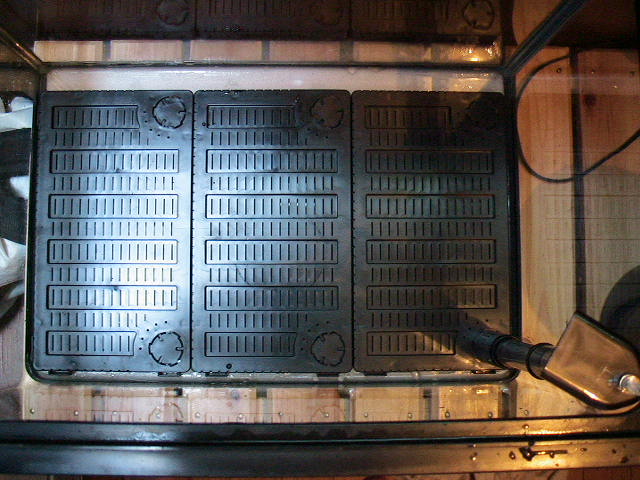 3枚で45cm水槽にはちょうどピッタリです。左奥に、上部フィルターからの水の戻りパイプがくるので、底部フィルターの出口は右手前に来る様にしました。ソイルとセットする前に気づいて良かった!!^^