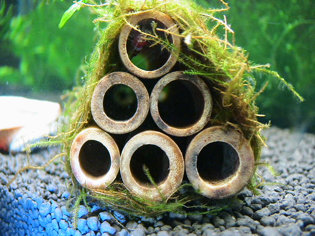 他の水槽用にもシュリンプハウス作ろうかな。どこかに竹落ちてない?^^