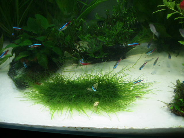 そうです、ウィローモスです。正確には竹炭に巻いて第二水槽に入れていたウィローモスです!