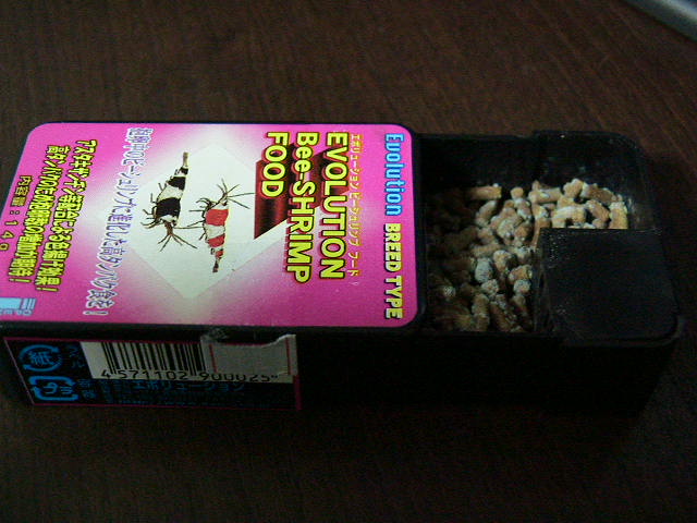 でも今日はこれだけには終わらず、水槽の水換え、清掃、エーハイムの清掃や移動終了後、餌をやろうシュリンプフードを見るとなんと、
